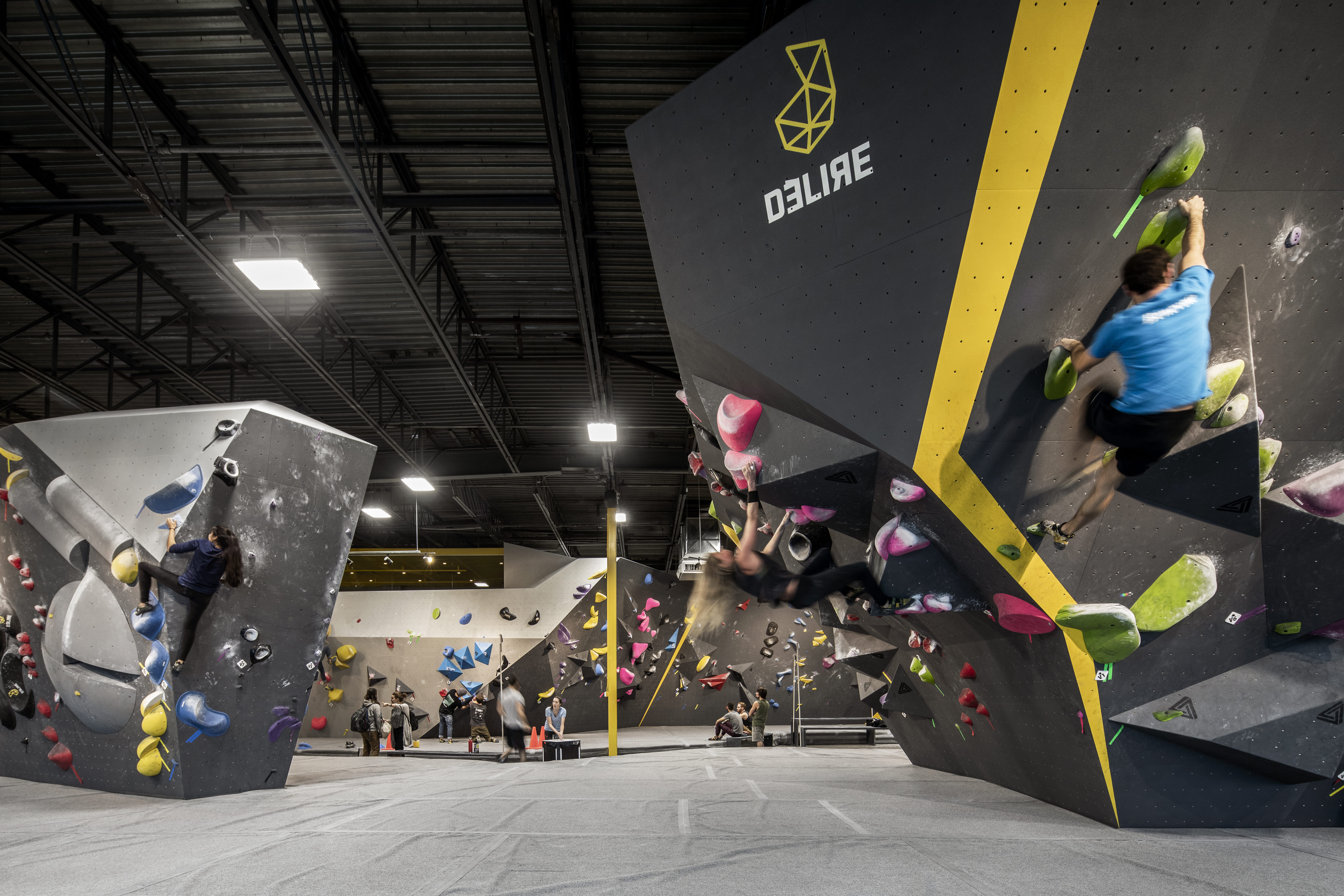 Tout en respectant la ligne établie pour ses deux premières succursales, Délire Escalade souhaite cette fois se démarquer par une atmosphère conviviale, inspirée d’infrastructures sportives multifonctions visitées en Europe. Le mandat est confié à Microclimat, qui se voit ainsi chargé de repenser les lieux dans leur esthétique comme dans leur organisation, avec un programme comprenant notamment une zone lounge, destinée à la détente comme aux rencontres festives.