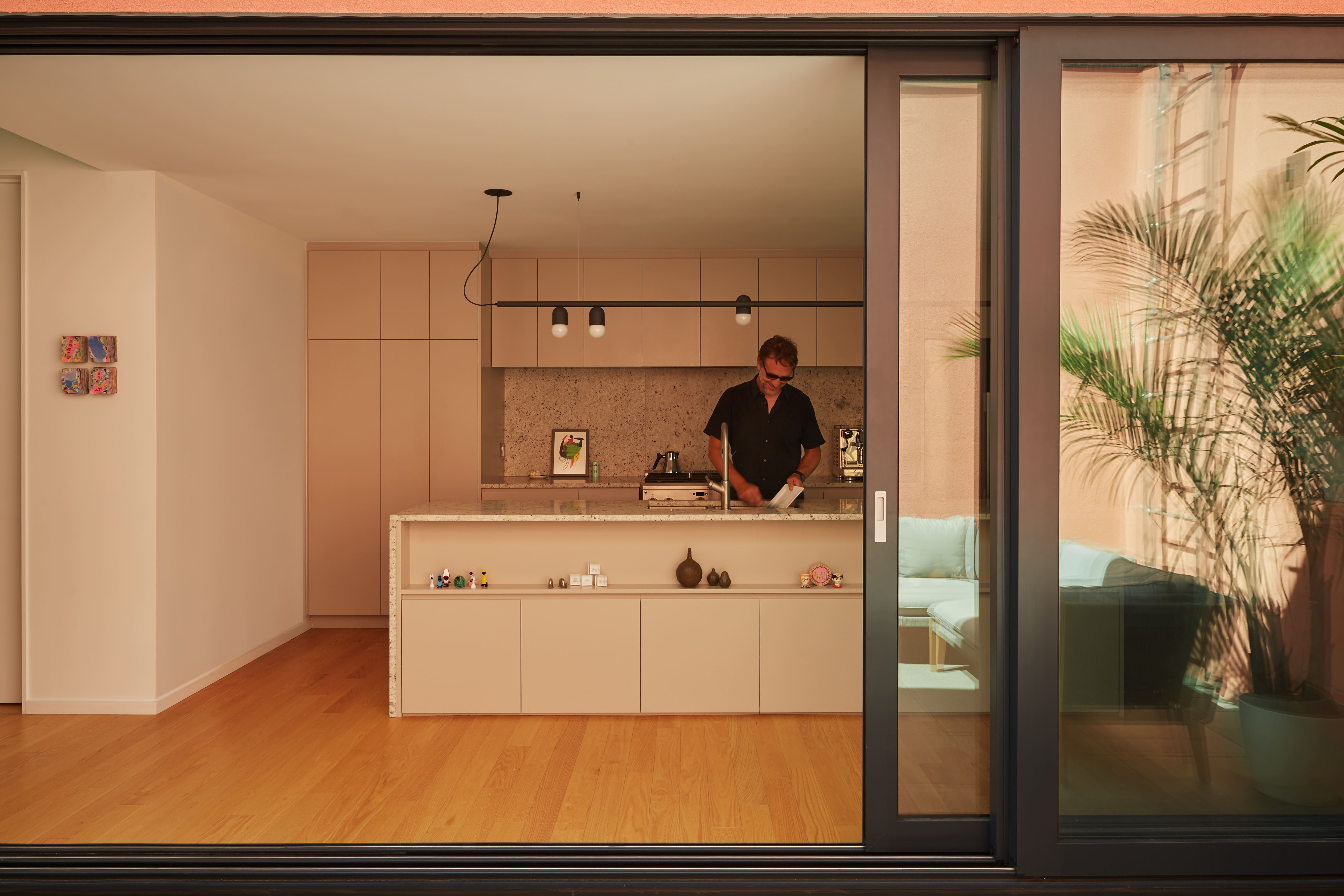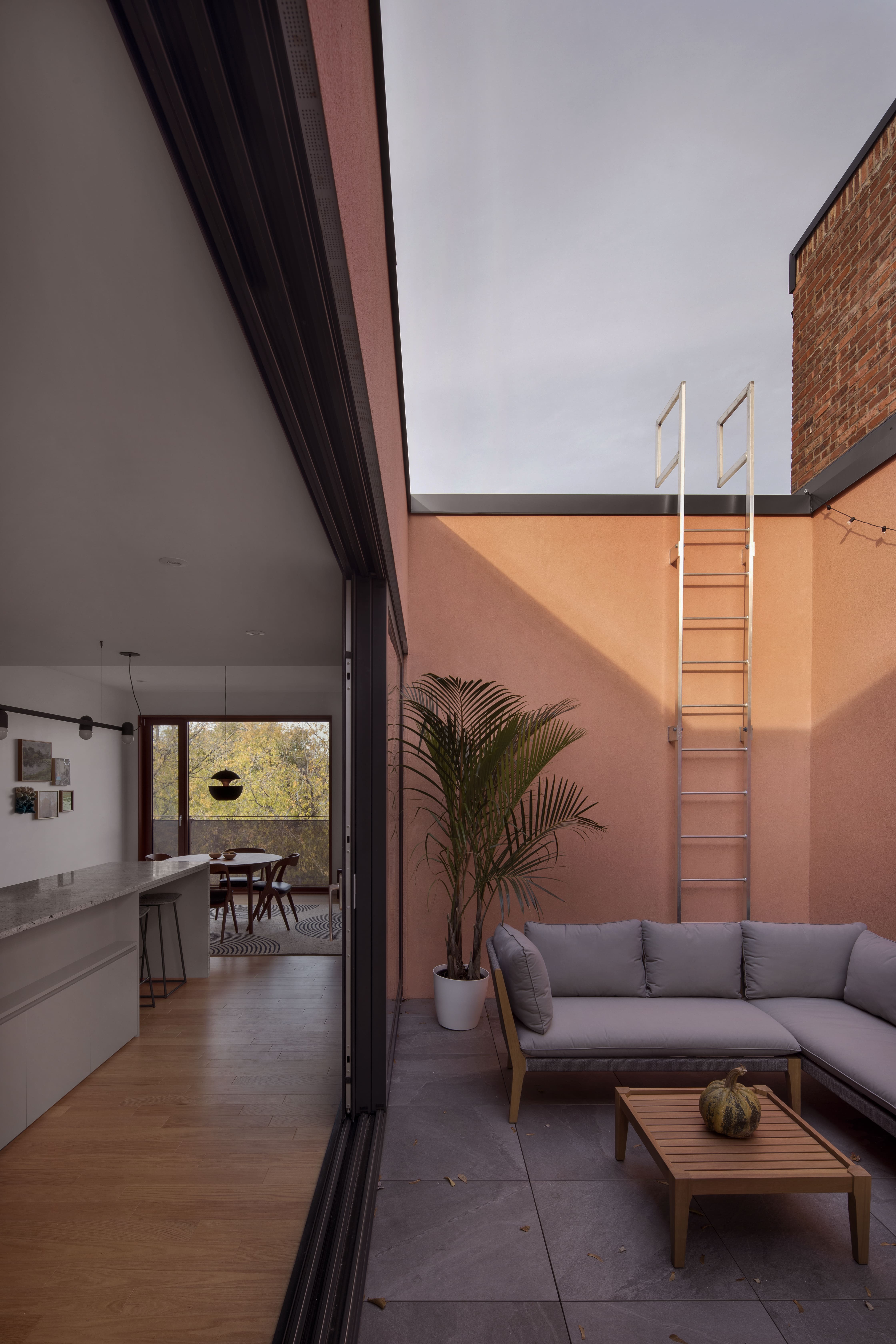 La commande est aussi simple qu’elle est complexe : construire un duplex imbriquant étroitement les deux logements tout en préservant leur autonomie, et ce malgré la création de nombreuses ouvertures et aires extérieures.
