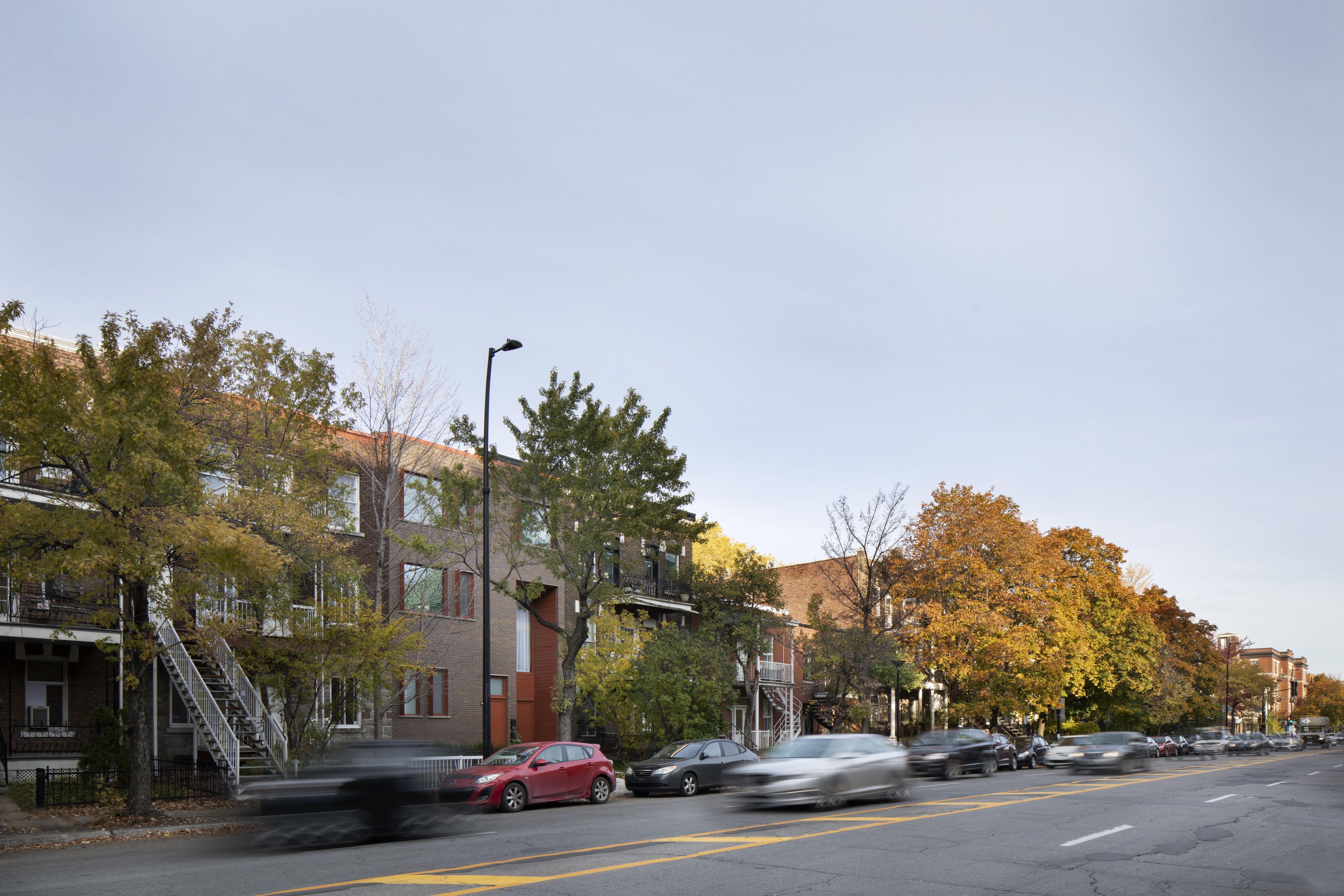 Un frère et une sœur ont le projet commun d’investir dans un quartier recherché de la métropole montréalaise pour y construire une nouvelle bâtisse, à même d’accueillir leur famille respective. Lui vit déjà à Montréal avec sa femme et son enfant, elle quittera Philadelphie pour s’établir en ville avec son conjoint et ses deux enfants. Le terrain est vite choisi : il s’agit de celui actuellement occupé par le frère, au cœur de Rosemont-La-Petite-Patrie. La vétusté de la maison existante conduit rapidement à la décision d’une démolition totale à la faveur d’une construction neuve, pour laquelle la fratrie fait appel à Microclimat.