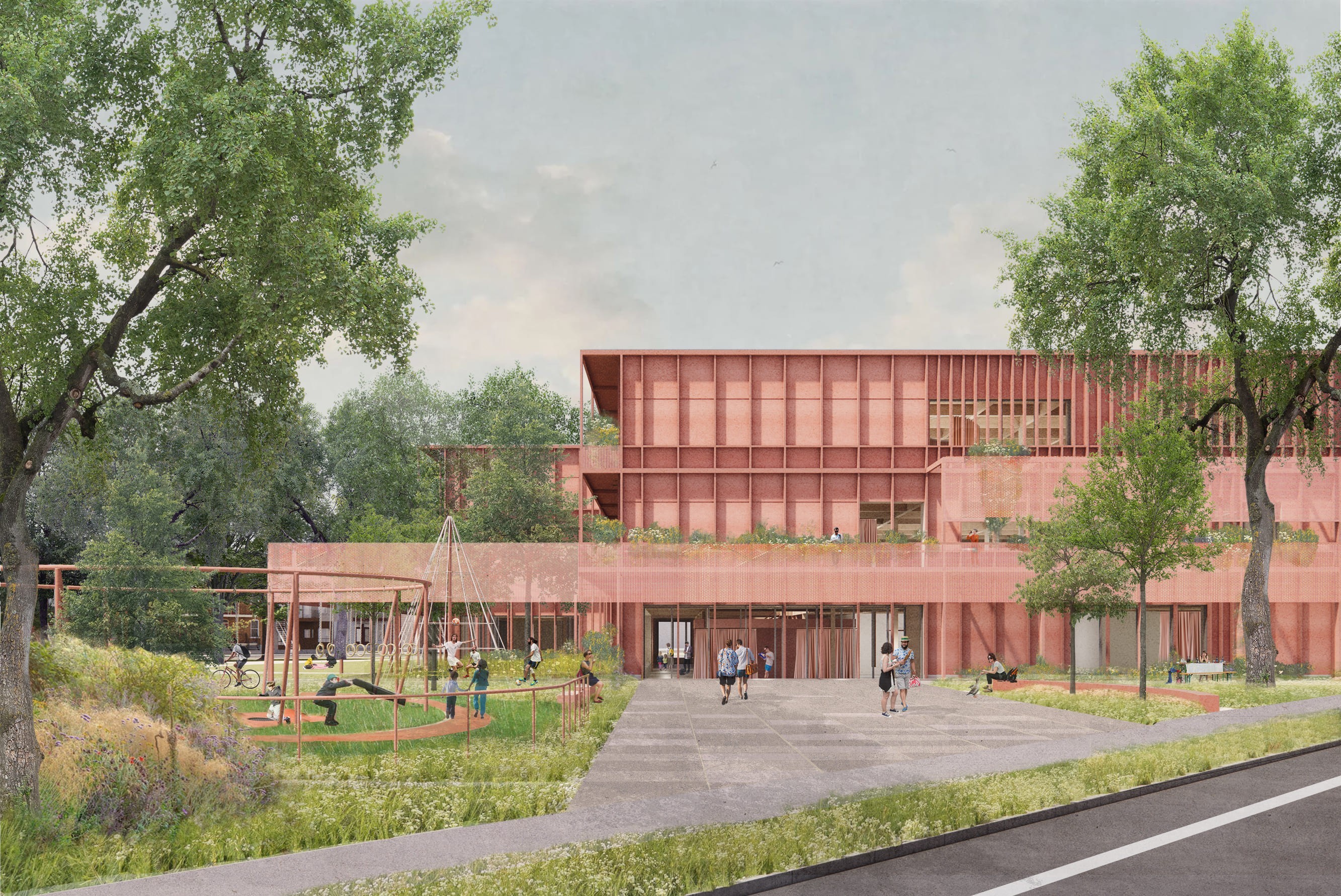 À l’intersection du parc et de la ville, la bibliothèque-jardin s’invente comme un écosystème où le savoir pousse, s’enracine et se partage. L’architecture s’y fait vivante, poreuse, hospitalière — un lieu où la culture et la nature se répondent dans un même souffle. Entre lecture et flânerie, entre mémoire et futur, le projet célèbre la rencontre : celle d’une communauté rassemblée autour d’un espace qui se cultive autant qu’il se découvre.