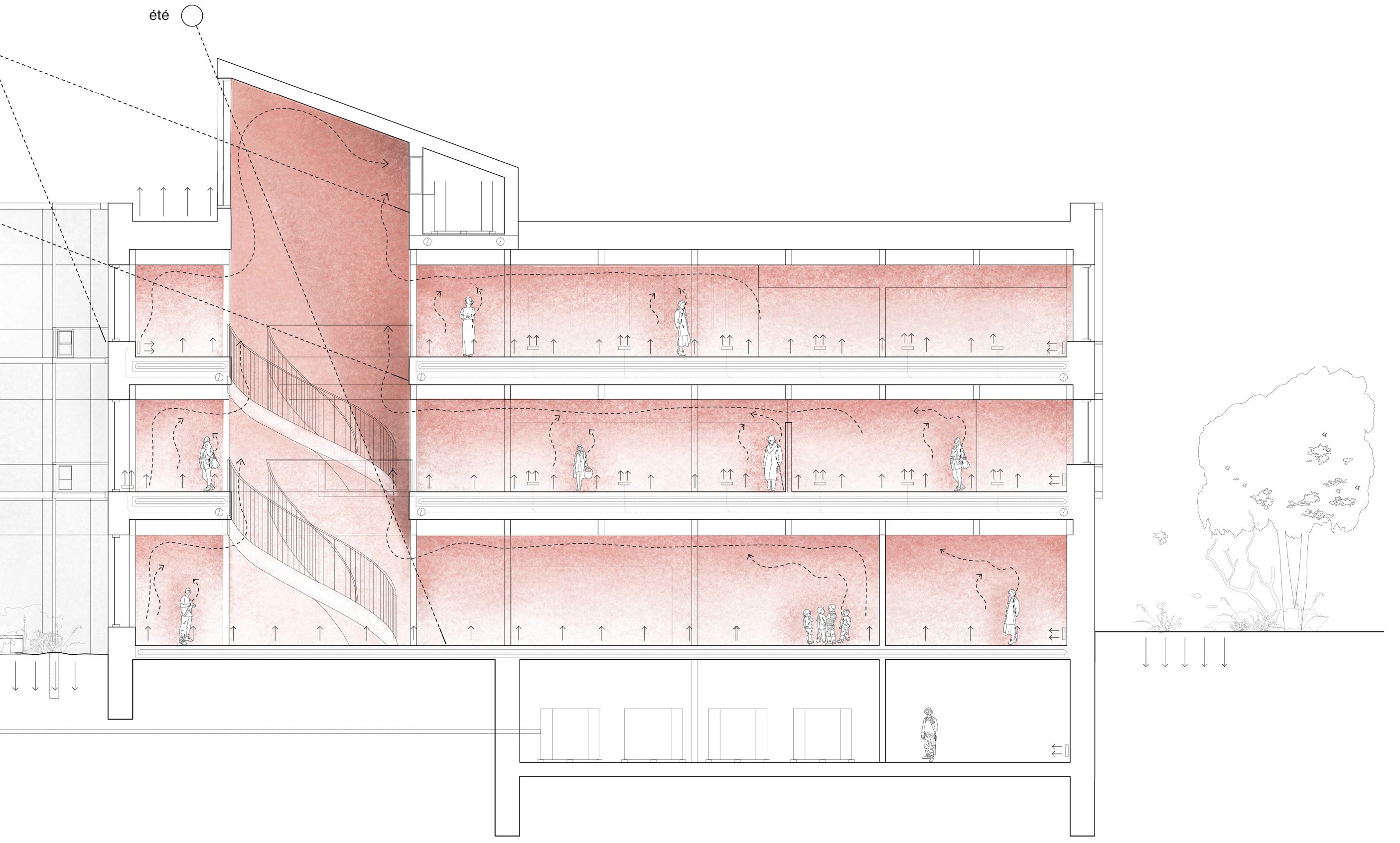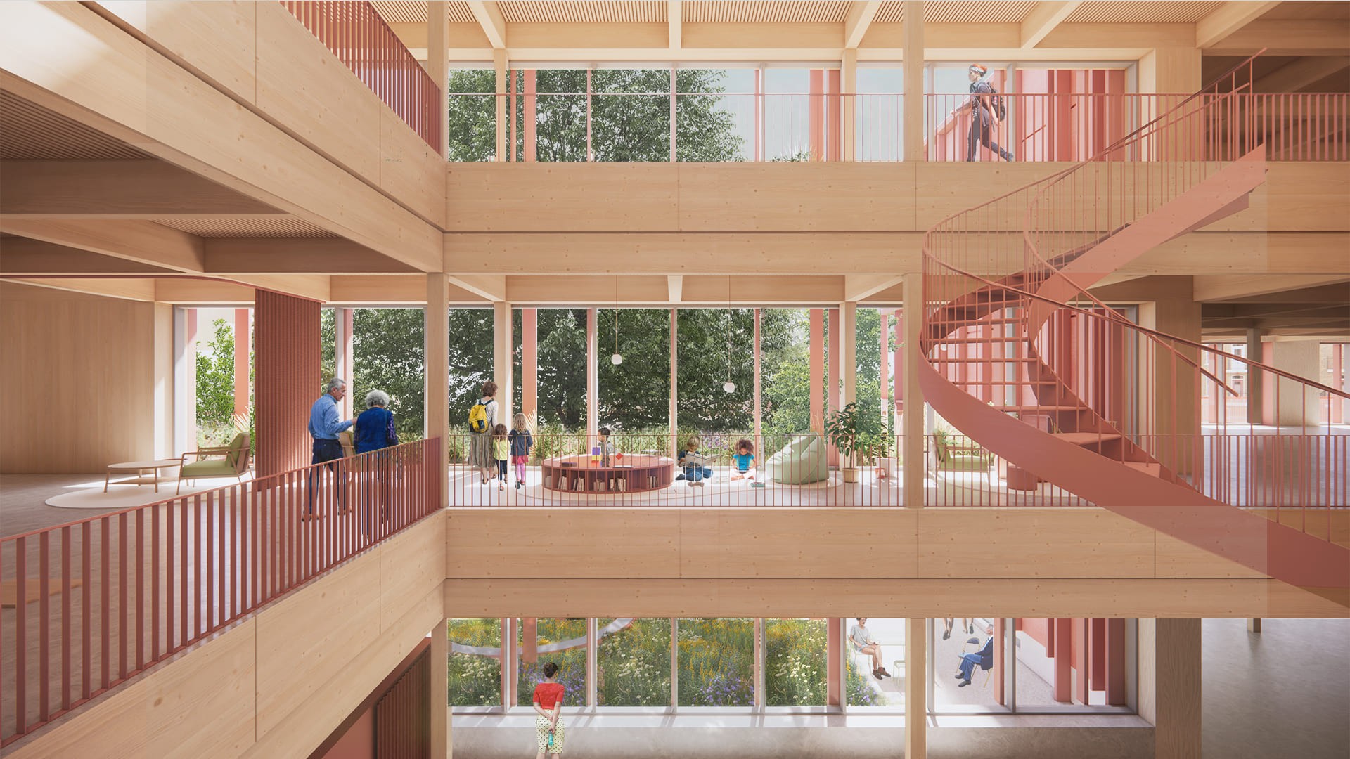 Conçue pour le concours d’architecture pluridisciplinaire de la Bibliothèque Caroline-Dawson et du parc Prévost, la bibliothèque-jardin vise à créer un lieu vivant et accessible, où architecture, nature et communauté se rencontrent et se régénèrent.