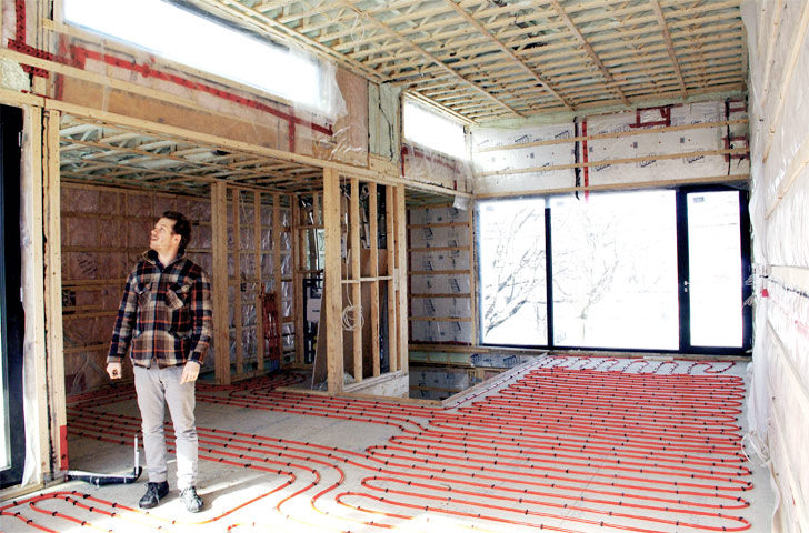 Les propriétaires d'une maison aménagent leurs espaces de vie à l'étage afin d'apprécier la ville en hauteur.