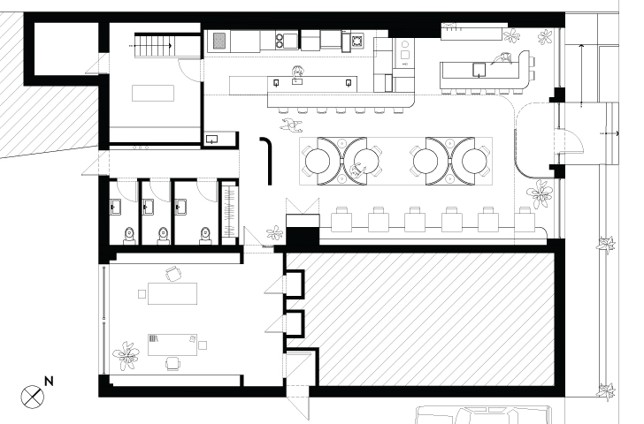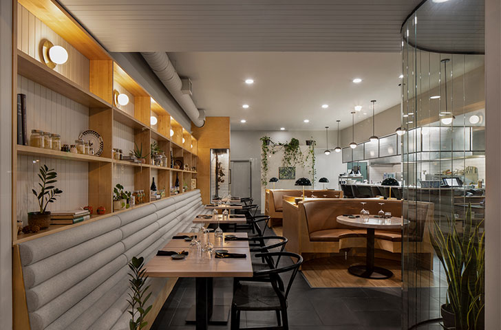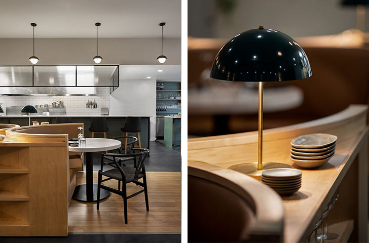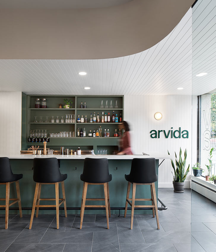 Attaché au concept de cuisine ouverte, le Arvida dispose deux grands comptoirs en enfilade. L’un invite les clients, dans l’attente de leur table, à patienter tout en dégustant les nouveaux arrivages. L’autre offre une position où l’on peut à la fois entreprendre l’aventure culinaire et regarder les cuisiniers et cuisinières se donner en spectacle. La nouvelle configuration propose ainsi 3 environnements distincts pour la dégustation et les festivités qui, ensemble, parviennent à faire oublier l’échelle de l’espace et où tout le monde peut s’y mettre à l’aise.
