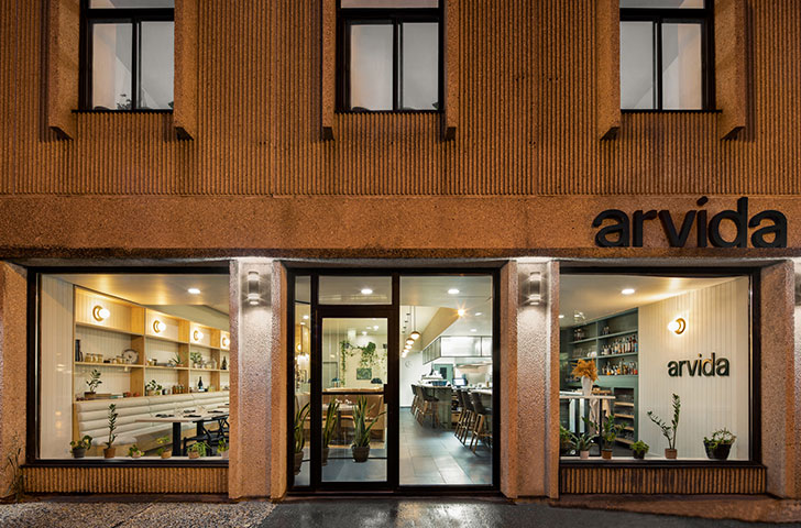 L’architecture du restaurant Arvida n’est qu’un indice de ce qui se retrouve dans l’assiette. Elle annonce une cuisine minimaliste, une cuisine attachée aux traditions et à la famille, une cuisine qui émerge du territoire qui l’entoure.