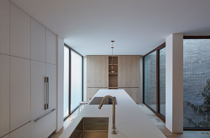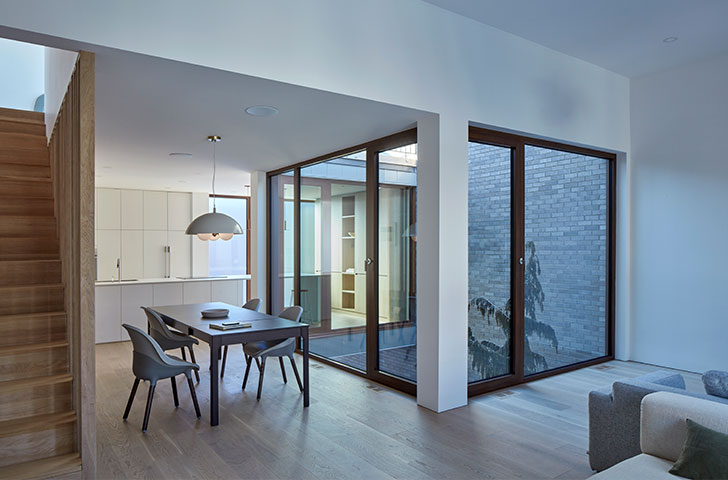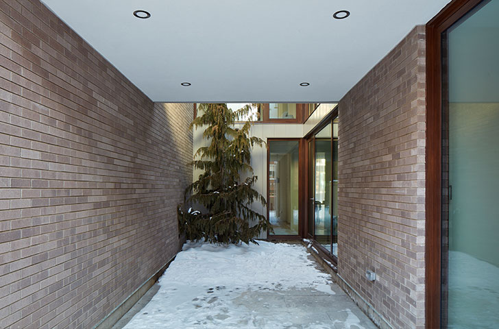 Une maison située sur un petit lot montréalais, répondant au désir des propriétaires de valoriser une plus grande intimité, et d'introduire une cour au cœur du logement.