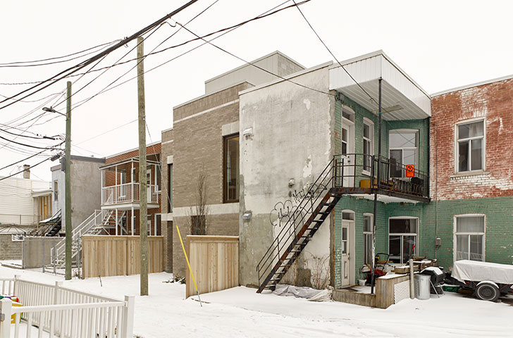 Situé dans Villeray – près du marché Jean-Talon, au cœur des activités d’un quartier prisé –, le terrain n’offrait pratiquement aucun espace de cour avant ni arrière. Le nouveau bâtiment allait devoir mitiger les tensions entre cette proximité avec la rue et le désir d’avoir des espaces ouverts vers l’extérieur.