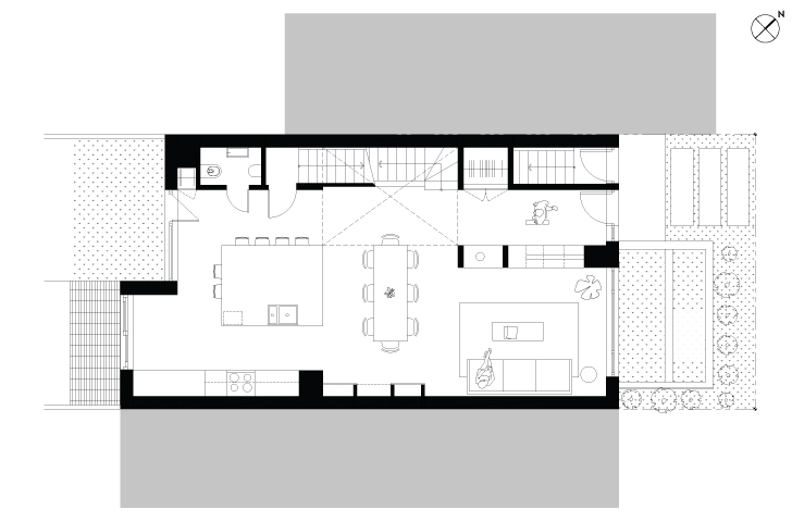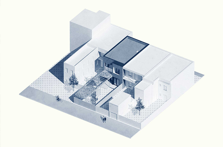 Si le « vide » inspire parfois des possibilités infinies, ce n’est pas le cas ici. Dès le départ, l’idée est plutôt de réimaginer le duplex disparu ; de concevoir un projet qui répond aux besoins contemporains des futurs résidents, mais qui s’inscrit dans la continuité de ce patrimoine architectural du quotidien.