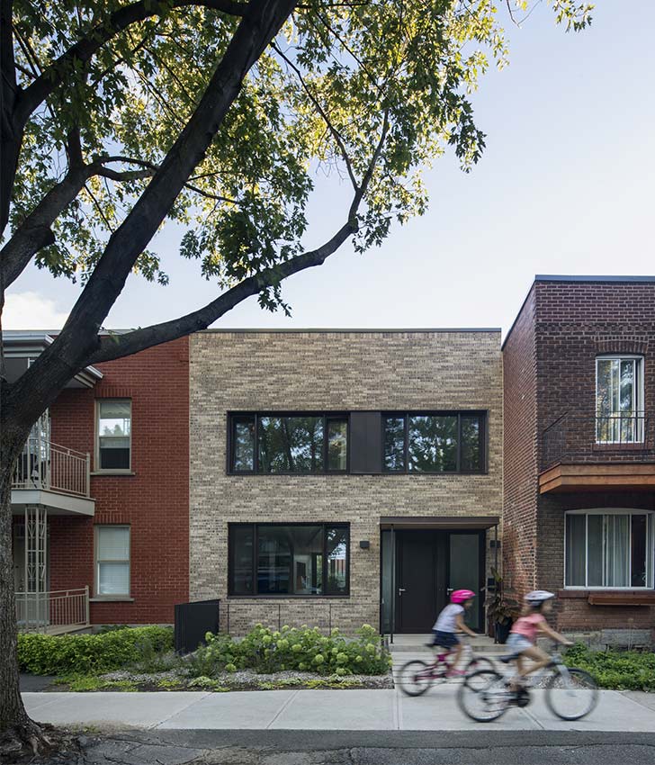 Aux débuts des années 2010, les flammes emportent un duplex de La Petite-Patrie. Une disparition silencieuse pour le patrimoine modeste montréalais. L’incendie crée alors une brèche anormale sur la rue Saint-Vallier : un terrain vacant dans un chapelet de plex ocres et rougeâtres. Cette anomalie urbaine devient rapidement une opportunité pour une famille de quatre d’y rêver leur chez-soi, une grande demeure de deux étages et un logement au sous-sol pour la famille ou pour la location.